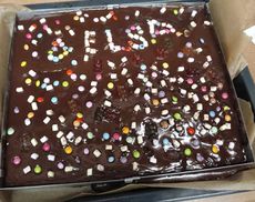 1 ½ bis 2 Becher süße Sahne mit untergerührter geschmolzener Zartbitter-Schokolade auf den heißen Kuchen gießen. Ist einfach, kann natürlich auch durch eine „anständige“ Crème ersetzt werden.