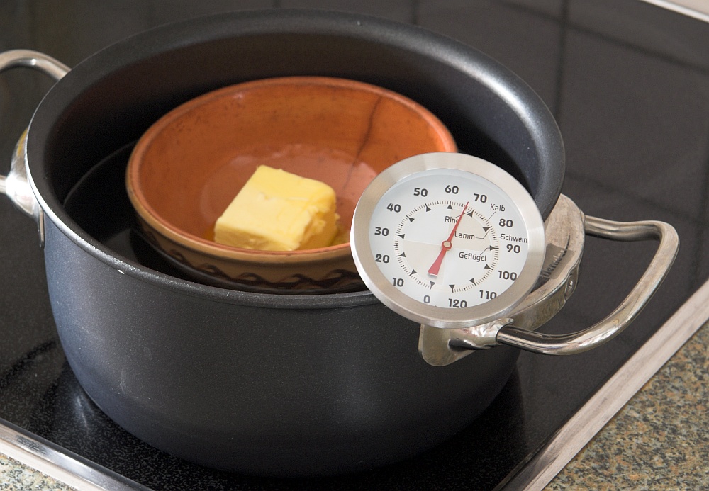 Mousse au Chocolat: Butter im Wasserbad schmelzen